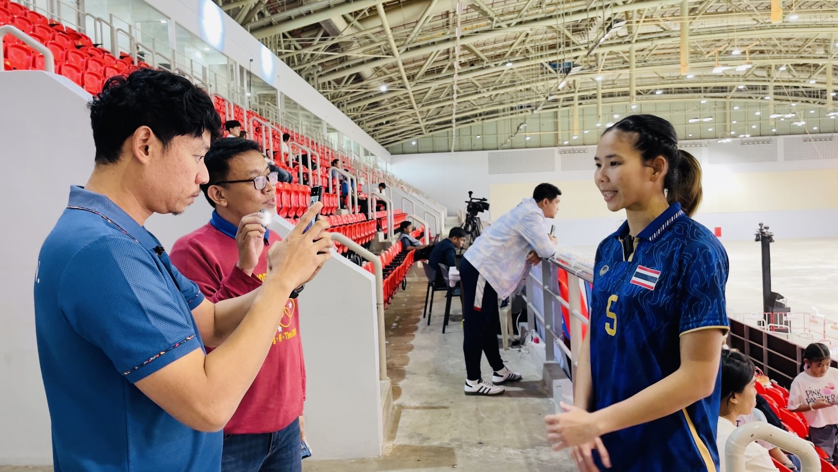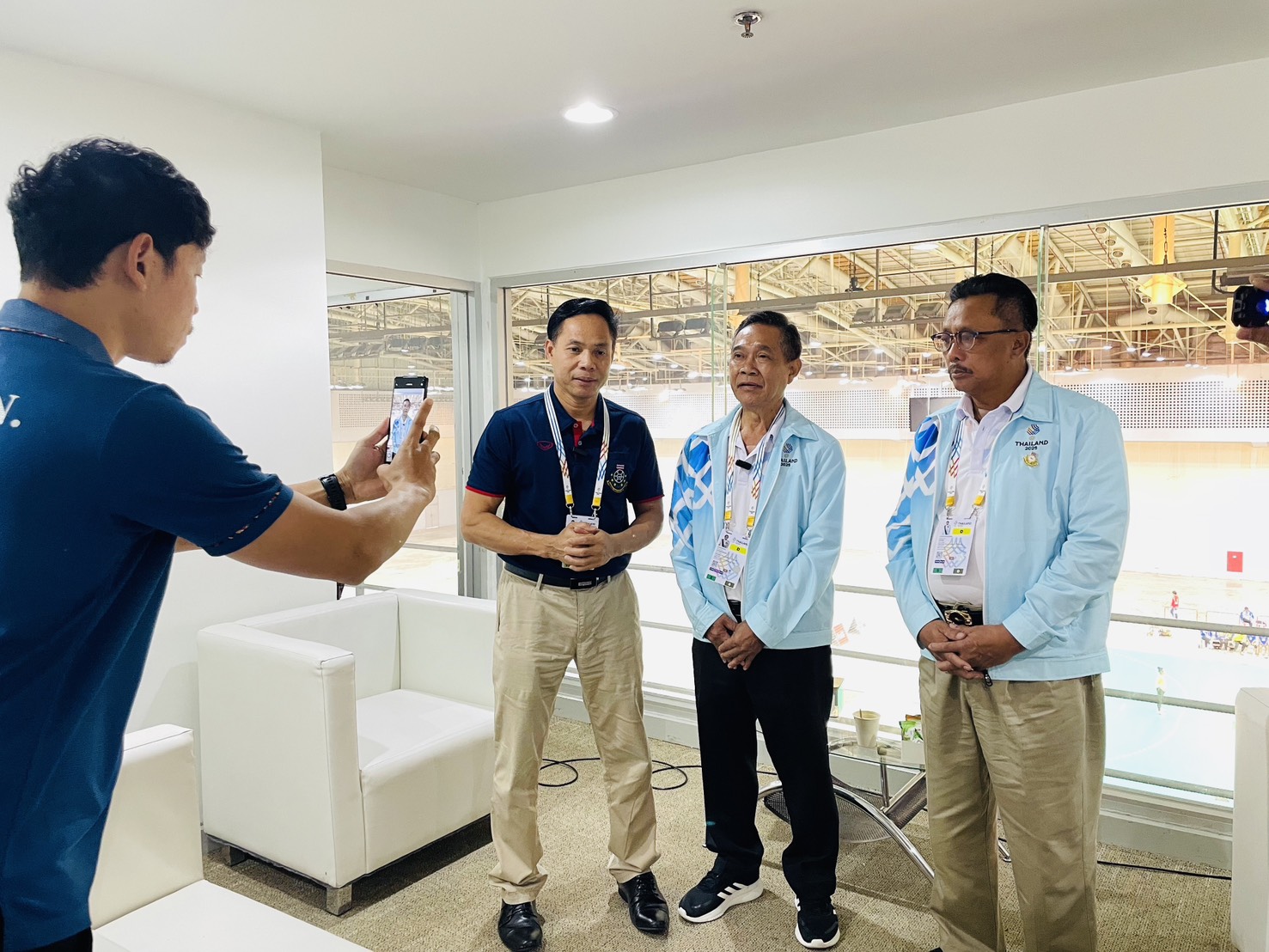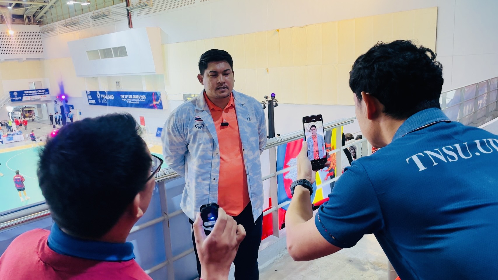 ต่อมาภายหลังจบการแข่งขันกีฬาแฮนด์บอลหญิง ซึ่งทีมชาติไทยเอาชนะทีมชาติสิงคโปร์ด้วยสกอร์ 29 ต่อ 23 คะแนน ได้สัมภาษณ์ นายสานิตย์ เอี่ยมผู้ช่วย ผู้ช่วยผู้ฝึกสอนแฮนด์บอลหญิงทีมชาติไทย และนางสาวนัทวรรณ ครอบบัวบาน (บีม) ผู้เล่นตำแหน่ง Left Back กัปตันทีมแฮนด์บอลหญิงทีมชาติไทย เกี่ยวกับภาพรวมการแข่งขัน ความพร้อมของนักกีฬาและแนวทางการพัฒนากีฬาแฮนด์บอลของประเทศไทยในระดับนานาชาติ